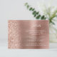 This elegant modern wedding details enclosure card features a rose gold brushed metal background image sprinkled with faux diamond glitter. Customise the white text, with the title "Details" in stylish handwriting script and the remaining text in sans serif font. The reverse side features a matching rose gold brushed metal and faux glitter design.