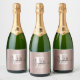 Rose Gold Brushed Metallic Girly Script Monogram Sparkling Wine Label