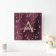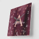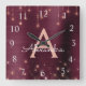 Rose Gold Burgundy Sparkle Monogram Name & Initial Square Wall Clock