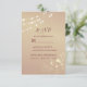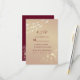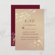Elegant, rustic, boho burgundy and rose gold wedding RSVP card with gilded floral lace, string lights and modern calligraphy script.