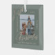 Minimal and elegant 1st year new home photo keepsake glass ornament to commemorate your first Christmas in your new home. The design features a simple minimal design with "First Christmas" displayed in elegant faux rose gold calligraphy. Personalize with new home address, year, family's name, and photo displayed in a simple modern design around the ornament. Note: background color can be changed to suit your preference.