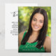 This graduation thank you card features pretty calligraphy and a vertical photo of the new graduate. On the front, a rose gold overlay includes the words "thank you" written in pretty script lettering; the graduate's name and graduation year are written in white below. The rose gold and white type overlays a full photo of the graduate. On the back, there's room to write a custom message to recipients.