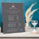 Elegant plaque with easel displays your services or price list beautifully. Perfect for tailors, seamstresses, personal shoppers, dry cleaners and more, this chic design features classic white lettering on a refined medium grey background adorned with faux rose gold foil clothes hanger illustration. Includes three customisable headings and body text fields, and space for your business contact information along the bottom. To adjust layout, enter your text and then use the Customise function to change positioning and font sizes.
