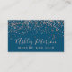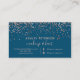 An elegant modern, stylish makeup artist business card with elegant modern simple hand lettering style typography with rose gold confetti ocean blue chic typography. all text is customisable, add your social media.