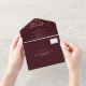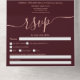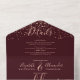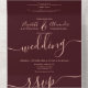 Rose gold confetti red burgundy all in one calligraphy wedding invitation with rsvp, accommodations, details, and more info. With a modern and trendy script.