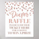 Diaper raffle sign for baby shower in a rose gold confetti pattern.
