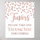 Favours sign for baby shower, bridal shower, birthday party or wedding in a rose gold confetti pattern.