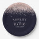 Rose Gold Confetti Navy Blue Modern Wedding Paper Plate