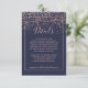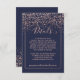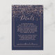 Rose gold confetti navy blue typography details enclosure card