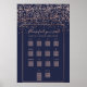 Rose gold confetti navy blue wedding table seating chart. Perfect for chic, elegant theme wedding