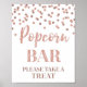 Popcorn bar sign for baby shower, bridal shower, birthday party or wedding in a rose gold confetti pattern.