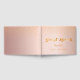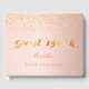 A guest book for a glamourous, elegant and modern Baby Shower, celebrating a baby girl. A chic rose gold gradient background with golden confetti sprinkle. The text: Guest Book is written with trendy faux gold letters. The names and date are written with a hand lettered style script, golden text. Template for your text on the spine, grey text.