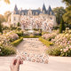 A clear, transparent background. Decorated cream, peach and rose gold coloured roses, flowers. Personalise and your names and details.