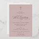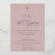 Rose Gold Cross Calligraphy Pink Baptism Invite