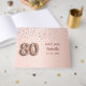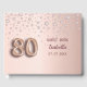 A guestbook for a girly and glamourous 80th birthday party. A faux rose gold background with pink faux diamonds. Personalise and add a name and date. The name is written in dark rose gold with a modern hand lettered style script. Number 80 is written with a balloon style font.