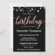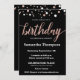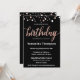 Rose Gold, Dots, Birthday Script on Black, Elegant Invitation