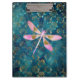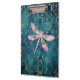 Rose Gold Dragonfly on Turquoise Floral Background Clipboard