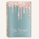Rose Gold Drip Glitter Teal Custom Text Diary Note Notebook