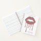 Rose Gold Dripping Glitter Lips Makeup Appointment Notebook with fashion faux blush pink/rose gold glitter drips on a chic white background with your custom details and name. Designed by Cedar and String. Perfect for your luxury aesthetic and chic lifestyle. If you need assistance or matching items, please contact us at cedarandstring@gmail.com