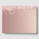 A guest book for a girly and glamourous Sweet 16, 16th birthday party. A rose gold gradient background with rose gold drips, paint dripping look. Decorated with a dress, gown. The text: The name is written in dark rose gold with a modern hand lettered style script. Personalise and add name.