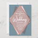 Elegant, chic, and modern with a retro vibe, faux printed rose gold geometric diamond shape outline on dusty blue, mauve, pink and charcoal grey diamond cutout, wedding invitations. This classic and sophisticated design is perfect for the trendy and stylish marrying couple. Personalise with your own message on the front as well as a customised monogram initial on the back. All photo print design.