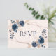 Rose Gold Dusty Pink Navy Flora Wedding RSVP Card