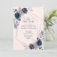 Modern and trendy, this pretty wedding Save the Date card design features a faux rose gold geometric embellished with navy blue and dusty pink watercolor roses and flowers, also featuring trend hand lettering on a dusty pink background. The back of the card features your favourite engagement photo. Part of a matching wedding suite. Copyright Elegant Invites, all rights reserved.