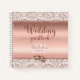This glam spiral notebook wedding guestbook features an elegant script monogram of the bride and groom, modern script typography for the title, and the rose gold gradient background is rimmed on top and bottom with rose gold glitter damask.