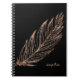 Chic notebook features a glittering, delicate rose gold feather on a black background. Customise with a name or text of your choice, or just delete the text field to leave blank. PLEASE NOTE: glitter is a digital image, not actual glitter.
