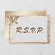 A very elegant wedding RSVP announcement featuring a rose gold floral frame and gold floral decoration at the corner, gold flowers around the edge of the frame and a stylish linen-look for the centre. The back features a metallic rose gold colour with the personalised details. This invitation can be fully customised to suit. Other colours are also possible, for more information please contact me at the link on this page.