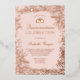A modern, pretty chic and elegant real rose gold foil flowers and floral elements illustration with gold confetti Quinceañera birthday party invitation on an editable pastel blush pink with a gold glitter crown tiara princess Perfect for a princess 15th birthday, perfect for her, the fashionista who loves modern pattern and glam