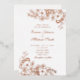 This luxurious wedding invitation features rose gold foil floral illustrations in both the upper and lower corners, framing your custom text with shimmering elegance. Paired with vintage-inspired script and serif fonts on a clean white background, this design is ideal for couples seeking a timeless and romantic wedding style. A perfect fit for garden, classic, or formal weddings in any season.