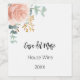 A chic white background. Decorated with a watercolored rose gold, blush pink floral, flower (rose)and green watercolored eucalyptus leaves, sprigs, greenery and a faux gold sprig. Personalise and add your text.