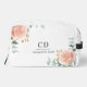 White background. Decorated with watercolored rose gold roses, eucalyptus greenery and golden sprigs.
