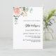 A chic white background. Decorated with a rose gold and blush pink floral, rose flower and green watercolored eucalyptus leaves, sprigs, greenery and a faux gold sprig. Personalise and add your name and party details.