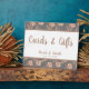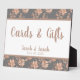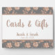 Customisable tabletop sign for wedding features handwriting style font on grey background with rose gold floral framed overlay and centre white text box. "Cards & Gifts" text can be customised to fit any of your "day of" needs, including "welcome" " reception" "photo booth" "parking" "cocktails" etc.