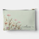 Rose Gold Floral Sage Green Name Monogram Accessory Pouch