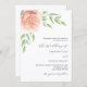 White background, decorated with a rose gold and pink rose, flower and greenery. Personalise and add your names details.