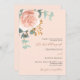 Rose gold florals greenery peach wedding invitation