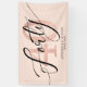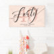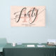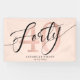 Stylish, elegant rose gold & blush pink 40th birthday banner. Design features number 40 in rose gold and typography script ''forty'' in handwritten lettering on a blush pink background, name & date on the front.