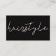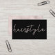 Minimalist elegant hairstylist calligraphy script metallic blush pink and black modern handwritten business card. ------- Suitable for freelancers, hairstyling or beauty salon employees.