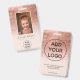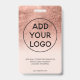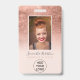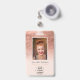 Modern rose gold foil metallic pastel blush pink logo employee photo pass, add your photo, name, title, company logo,.