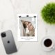 Wish your friends, family members, and acquaintances a Merry Christmas this holiday season with this easily customisable flat Christmas card printed with your photos, one on either side, a Christmas greeting you can customise to wish everyone a wonderful Christmas and new year in your own words. Or you can keep what's already written or even delete it and leave the area blank to write by hand once you receive your personalised Christmas cards. They feature pretty Christmas garlands decorated with bows in rose gold foil for a sweet traditional Christmas feel with a neutral light grey bow on the back.