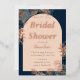 Rose gold foil bridal shower floral Invitation. Dusty blue rose gold floral. This invitation features gold flowers, gold leaves, flowers and leaves, embellished with rose gold foil accents. Personalise with your bridal shower details.