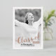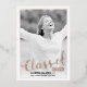 Real rose gold foil Modern Class of 2023 script gold border photo invitation/announcement. It features a photo of the graduate and the text "Class of 2023 in real rose gold foil.