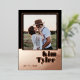 Trendy modern bold typography rosegold and black wedding save the date card with custom photo and text template.