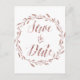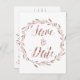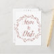 Wedding Save the Date postcards with rose gold foil effect wreath and custom black text - you can change text, printed on white background