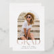 Celebrate years of hard work with our modern minimalist graduation announcement invitation in a warm neutral colour palette with a pop of real rose gold foil. This modern and minimalist design features a single photo framed in the trendy arch shape. The word "GRAD" overlaps the bottom of the photo. Flip it over to find the graduation party details.