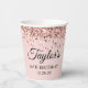 Create your own rose gold glitter and customisable solid colour blush background 30th birthday party paper cups for your guests.