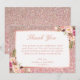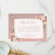 Rose Gold Glitter Blush Pink Floral Thank You Card